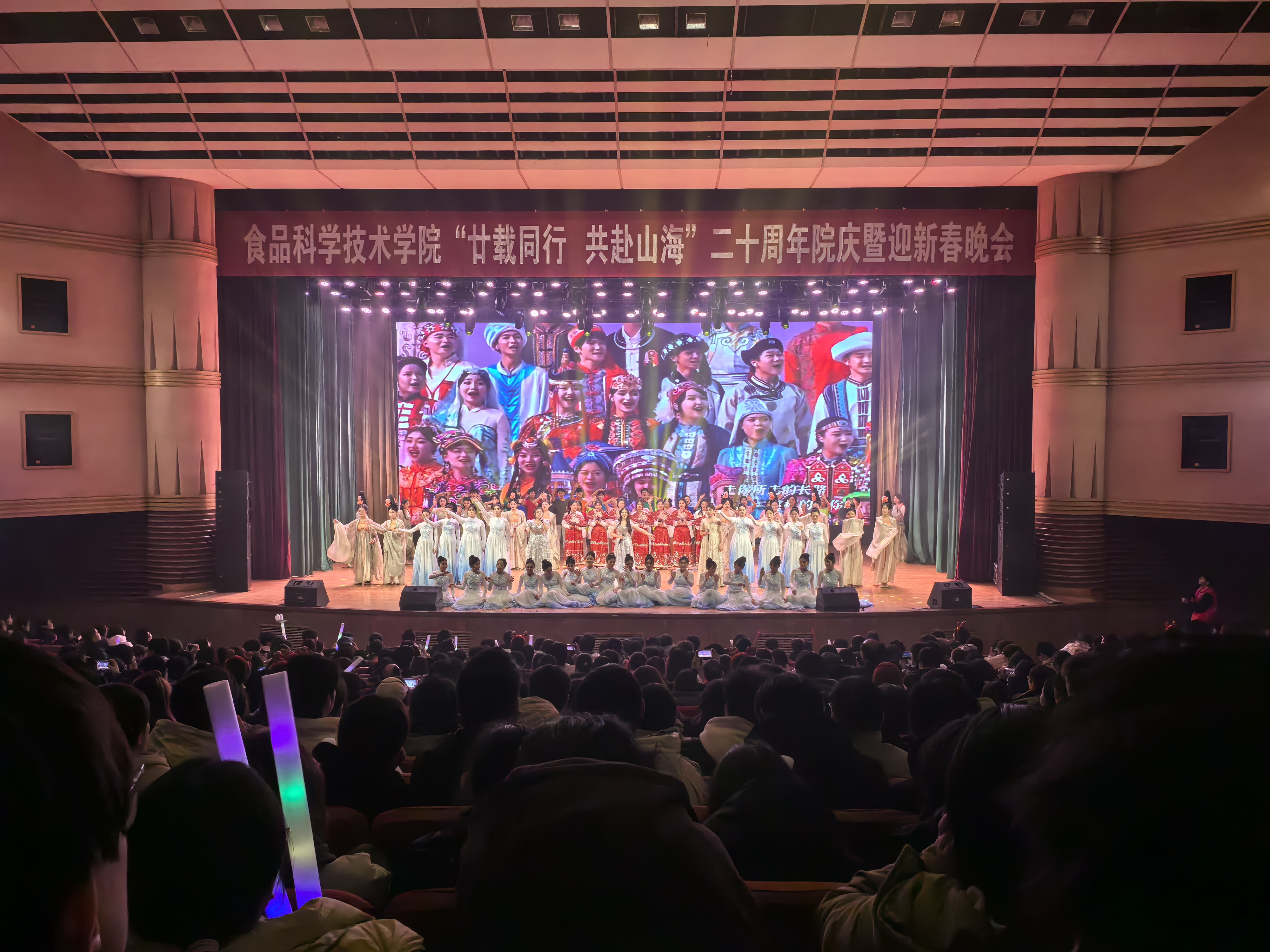 教师出席此次晚会。在这新春与旧日接力,未来与历史交会特殊时刻,礼堂内座无虚席,领导老师和同学们齐聚一堂,共同欣赏这一场厚重而华丽的视听盛宴。