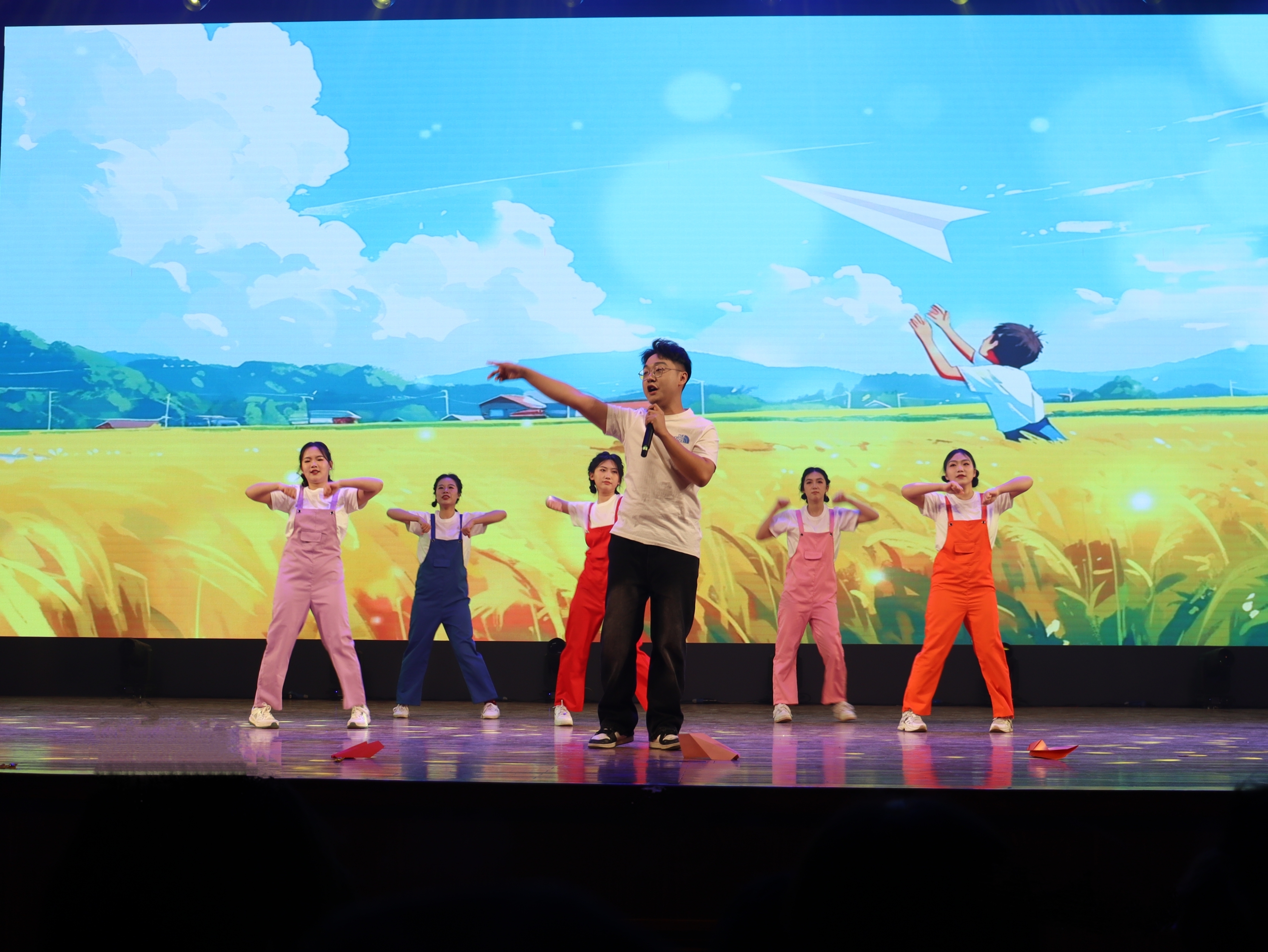 在激烈昂扬的合诵后,晚会走向第三篇章“展望·辉煌未来”,灯光再次亮起,诙谐幽默的小品《终极健身计划》登台表演,在一句句打趣似的对话中,探讨着健康生活的重要性,倡导“强身健体”的生活方式;歌伴舞《稻香》的歌声缓缓的传来,曲终之时,充满活力的舞蹈《你要跳舞吗》随之响起,调动起现场情绪,把晚会氛围推向高潮;最后,深情优美的歌伴舞《如愿》在场馆中唱响,寓意着所有美好的愿望都能成真,也正寄托着师生们对美好生活最诚挚的祝福,晚会就此落下帷幕。