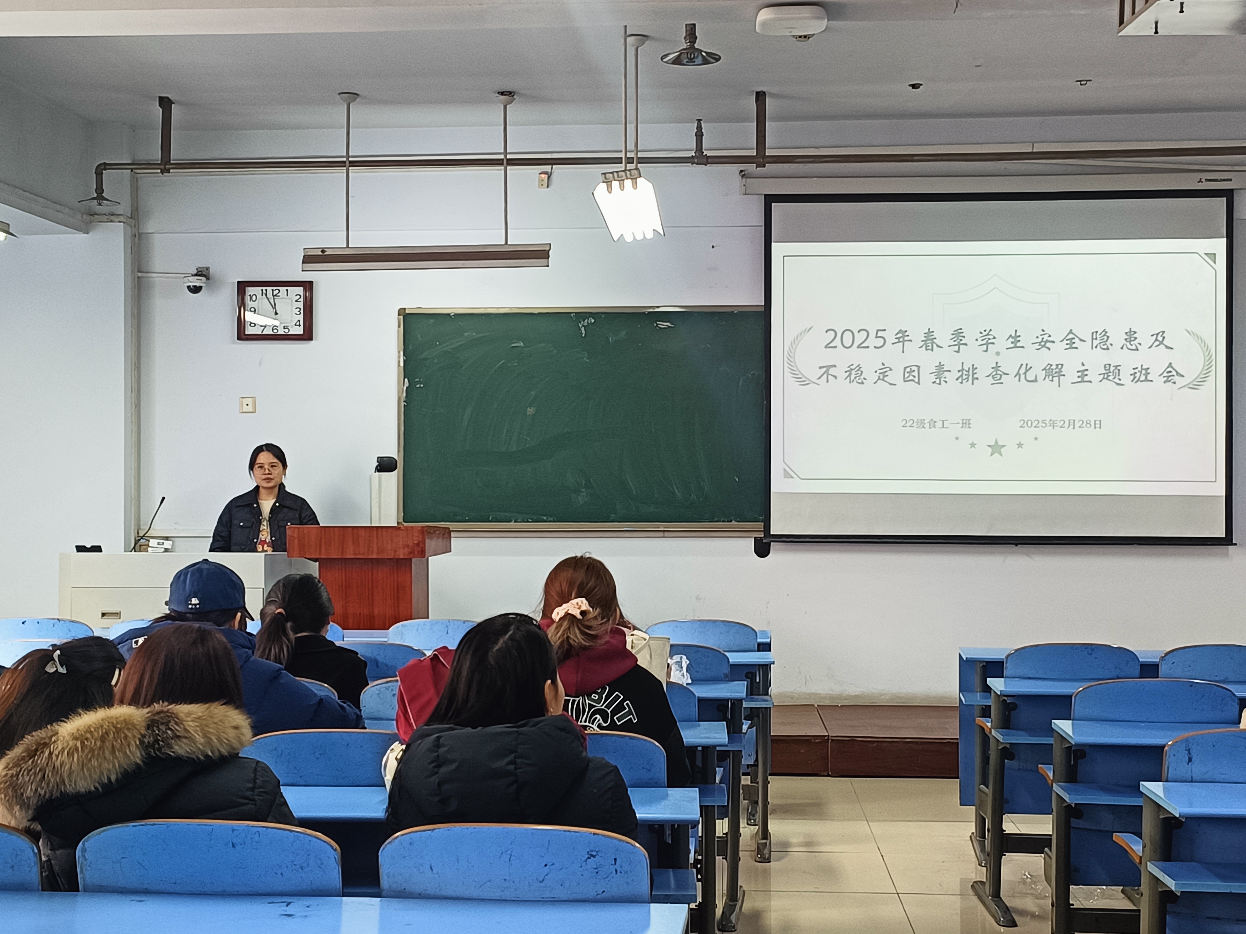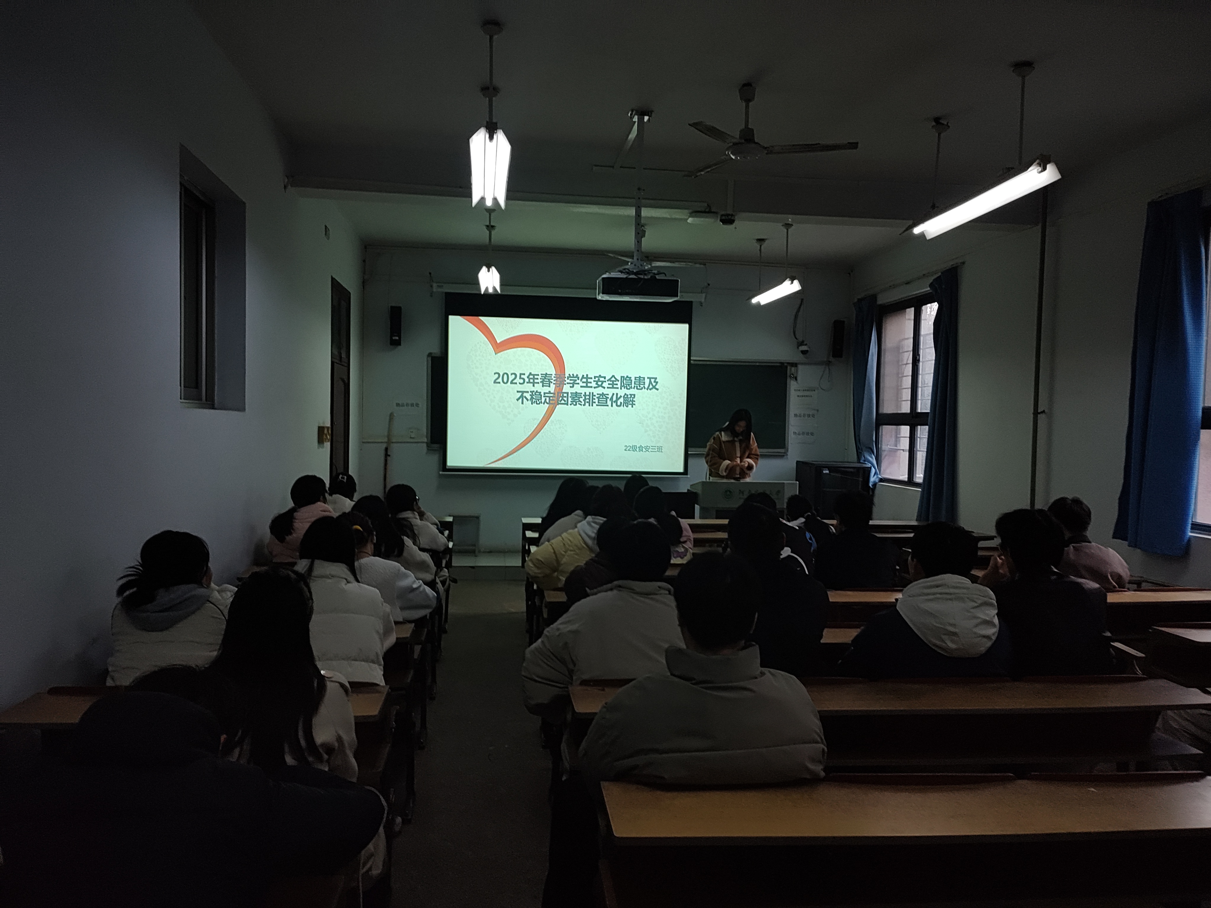 组织开展“2025年春季学生安全隐患及不稳定因素排查化解”主题宣讲会,在本次主题班会中,各班主任带领本班学生进行一系列安全隐患排查工作,包括排查人身安全隐患、排查学生宿舍隐患等四大方面。同学们互相交流实用的互助自救技巧,共同营造澳门银河App