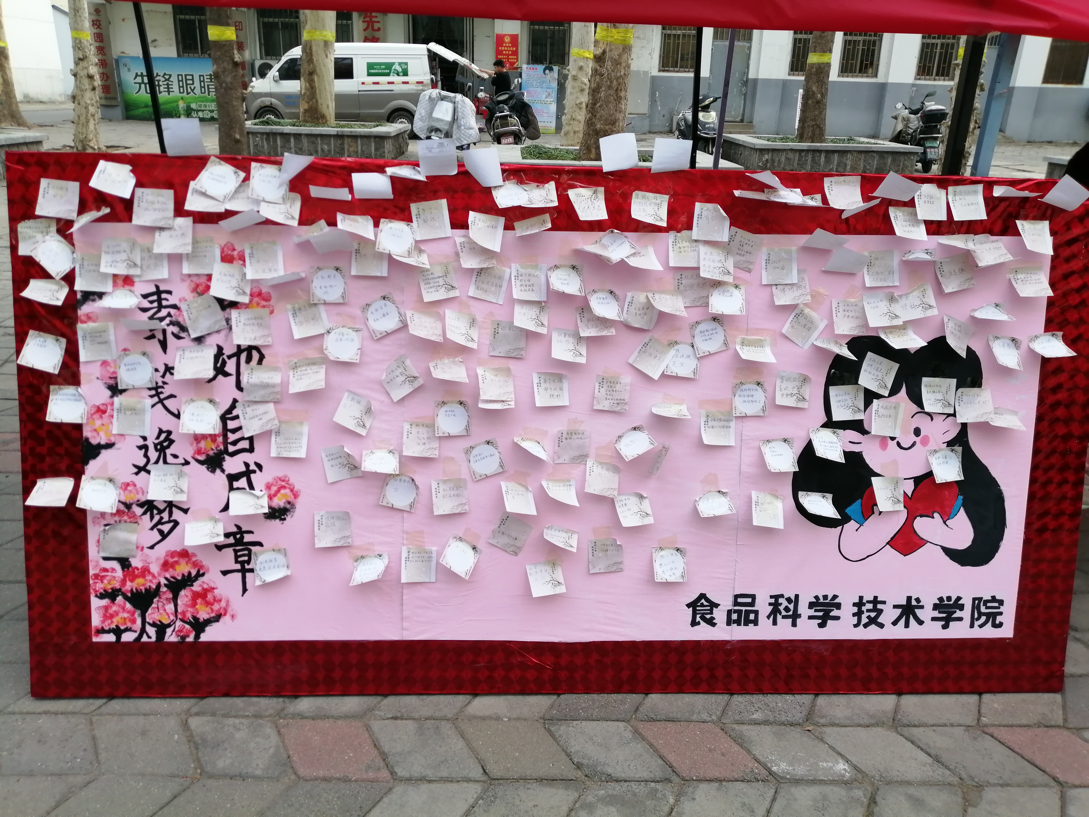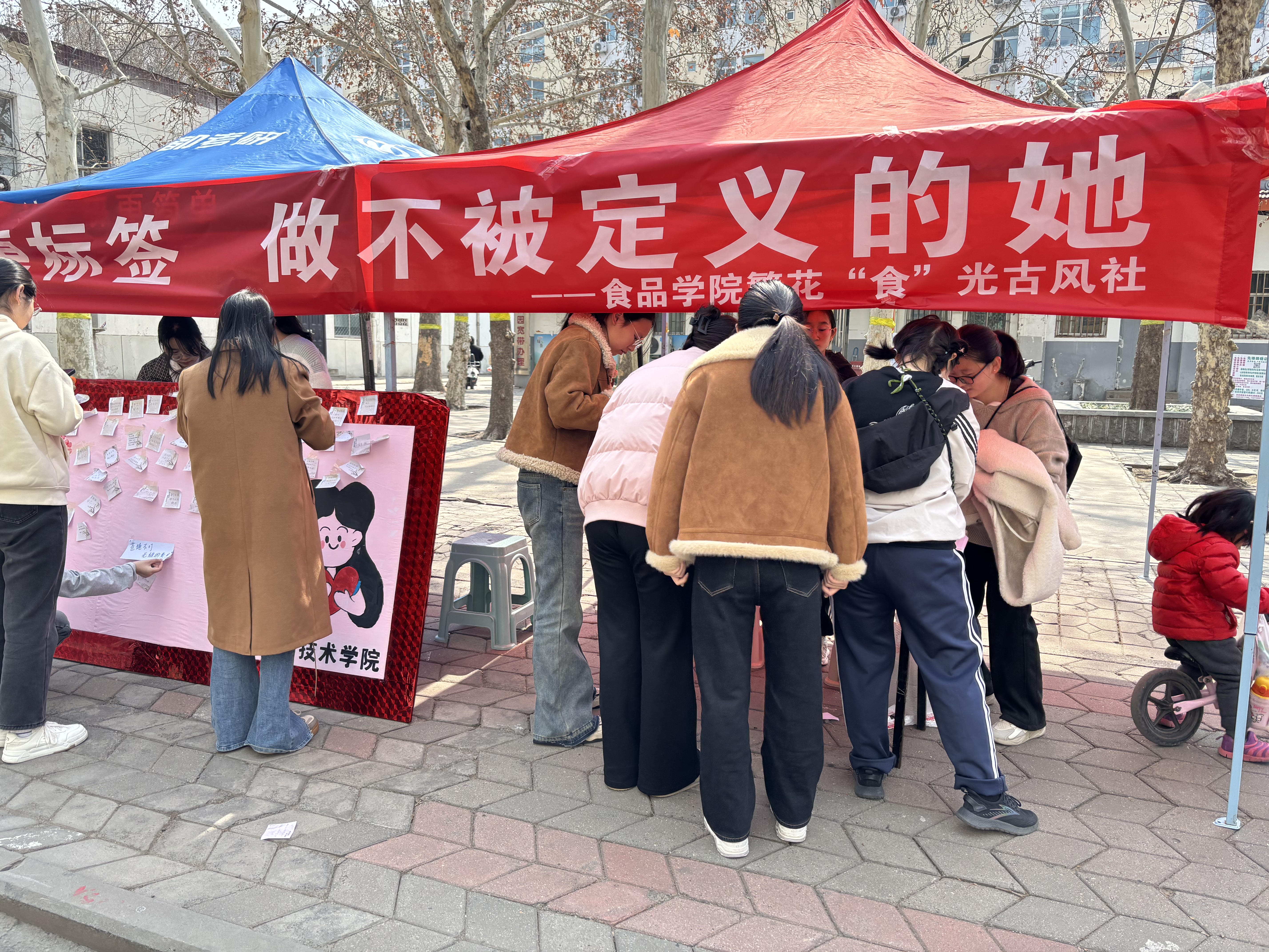 3月8日,同学们纷纷在“素笺逸梦,她自成章”展板前驻足,亲手撕下那些强加在女性身上的刻板印象和不良标签,并在便签上写下对女性的美好祝愿。“独立自信”、“勇敢追梦”、“活出自我”……一张张便签承载着同学们对女性最真挚的祝福,也展现了新时代女性自信、自立、自强的精神风貌。当然,参与活动的同学们也都收获满满,香囊、古风书签、小挂件等精美礼品让大家爱不释手,脸上洋溢着喜悦的笑容。