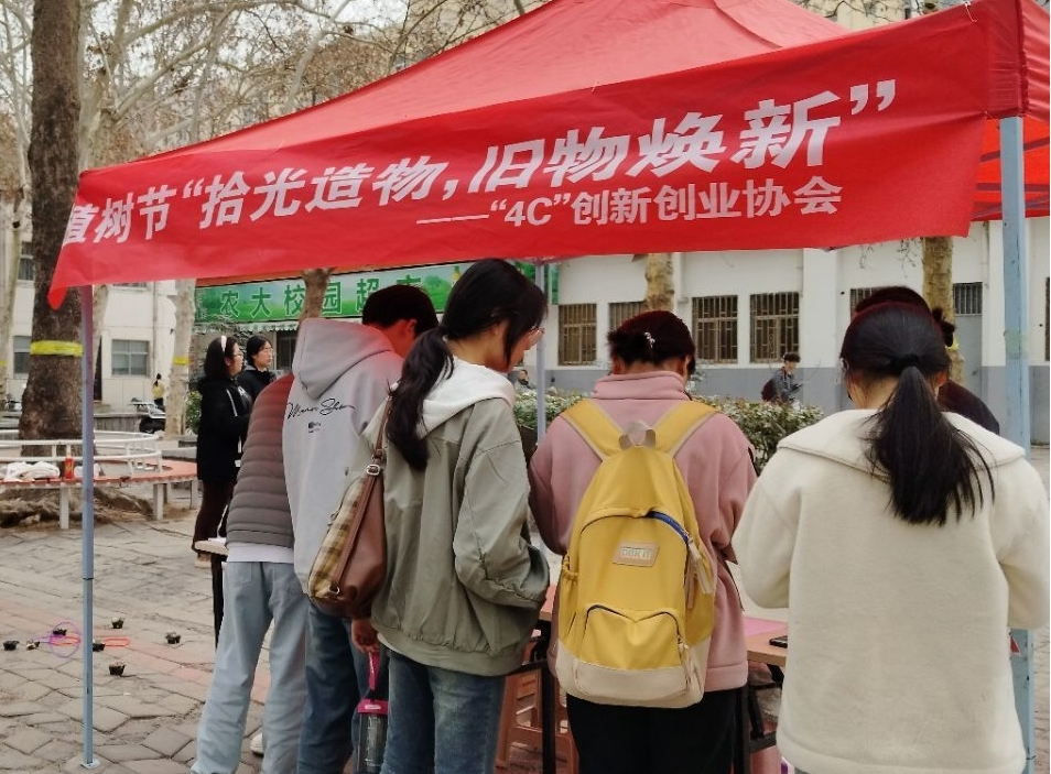 “4C”创新创业协会于2025年3月12日在文化路校区开展了植树节"拾光造物,旧物焕新"主题活动。