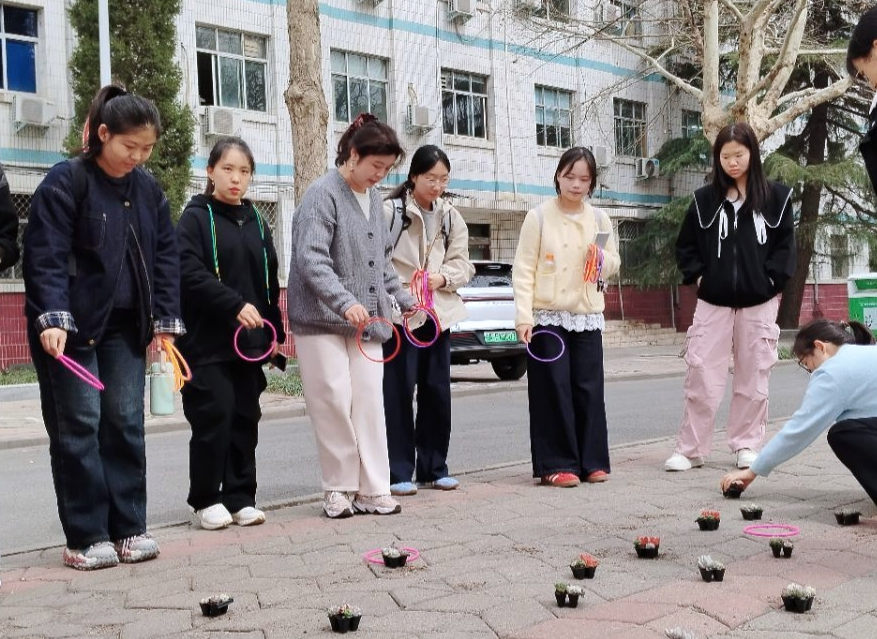 绿意流转,套圈游戏传递生机。线下游戏吸引众多同学参与,通过答题赢圈的方式,趣味升级。手握套圈的同学屏息凝神,当圈中目标花盆,现场欢呼与掌声不断。同学们带着自己赢取的绿植,不仅收获了一份绿意,更将绿色环保的理念深植心间。