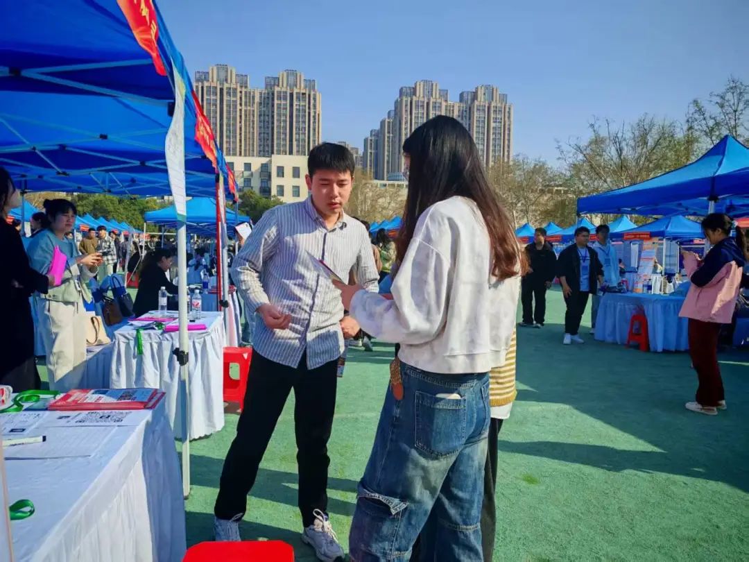 活动现场,学生们穿梭在各个企业展位间,主动与企业代表进行咨询交流,展示自身业务能力和知识素养,选择目标企业并投递简历。