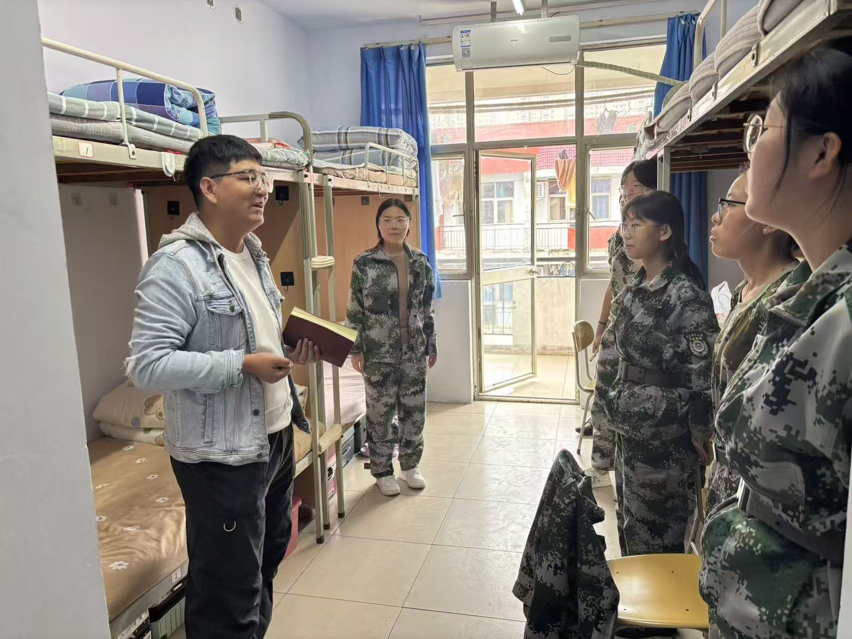 (通讯员 史静薇)天空落下的雨点,按下了军训的暂停键,为帮助新生更好的适应校园住宿生活,培养良好的生活习惯与集体意识,澳门银河App