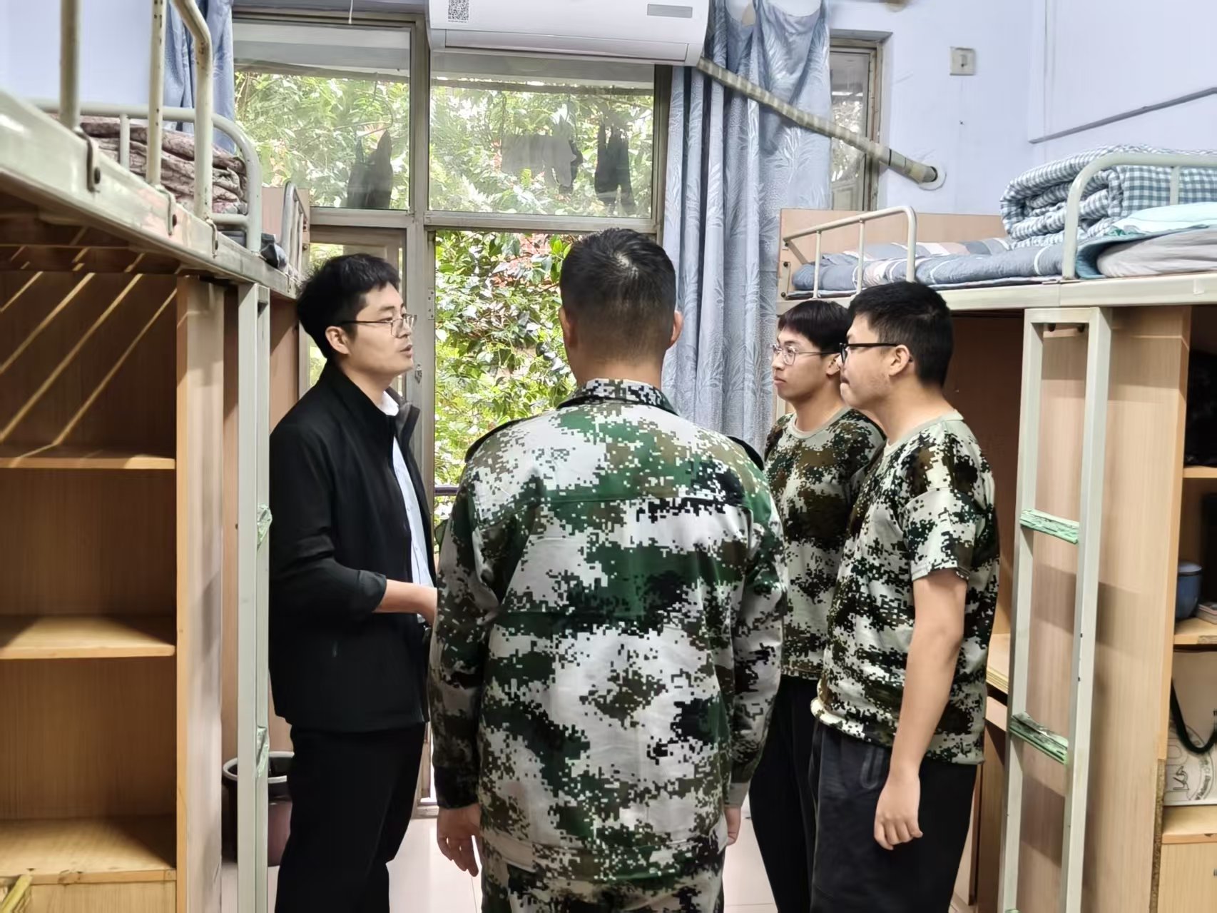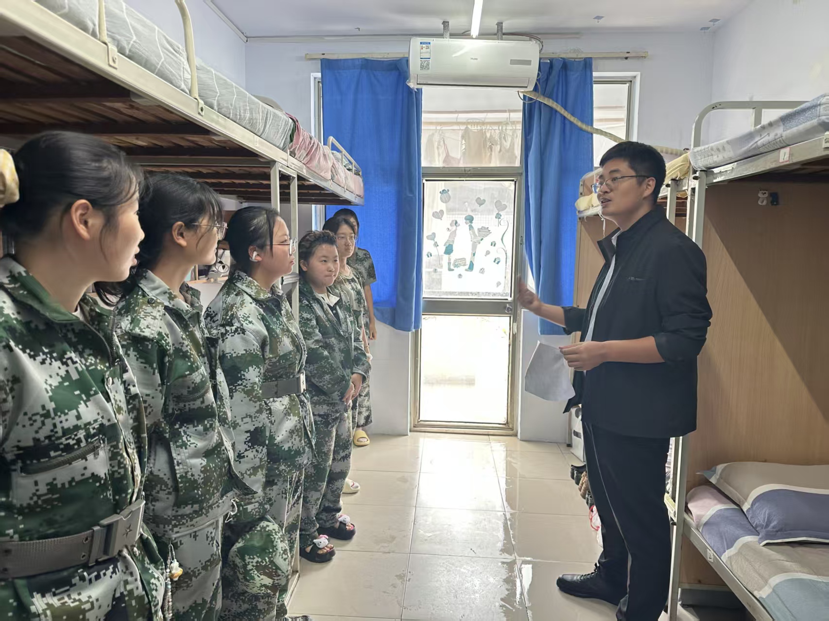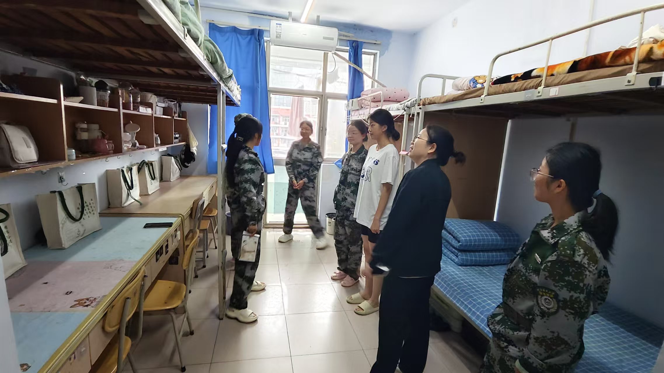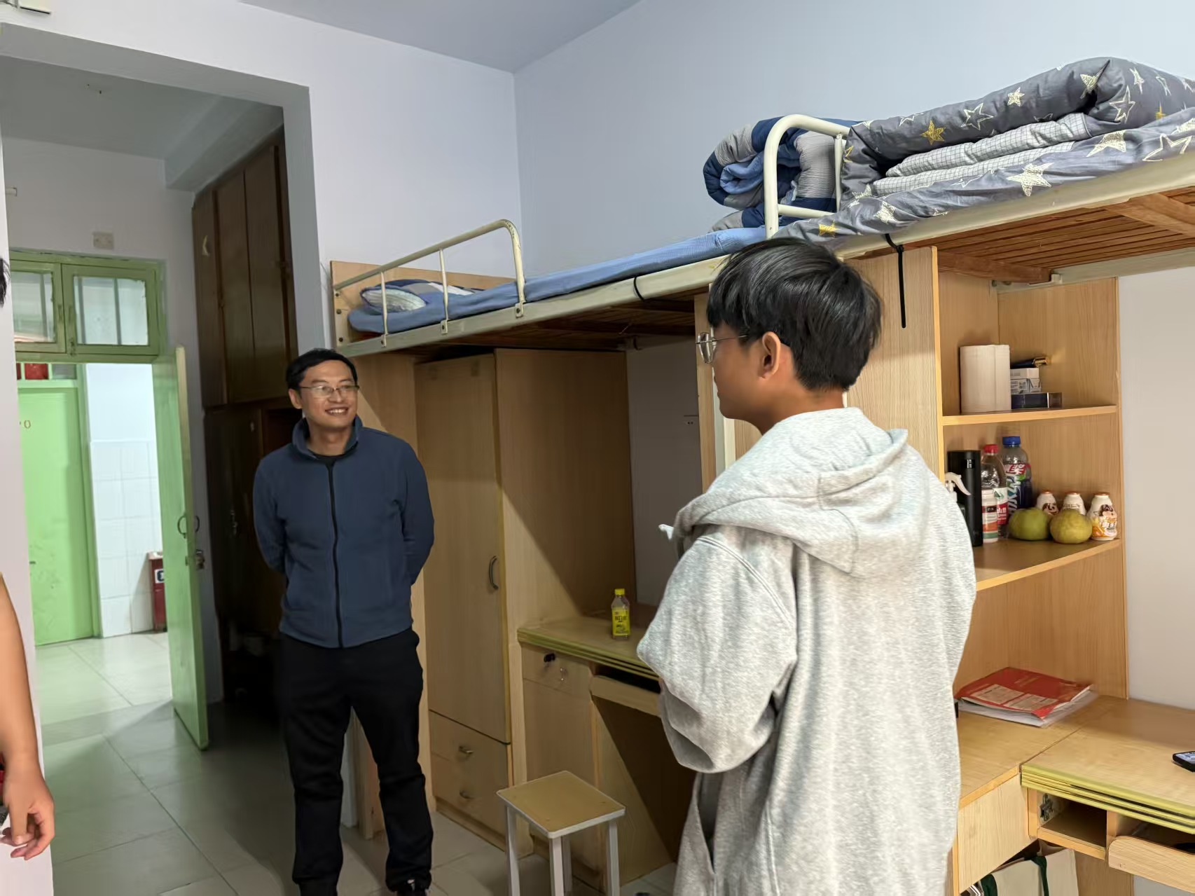 走访过程中,班主任们以“整洁、规范、安全”为标准,逐间查看宿舍内务情况。从床铺被褥的平整叠放、桌面物品的摆放有序,再到宿舍电器安全使用,电线线路排布清晰,老师们细心询问,逐一检查,对于内务整洁、氛围温馨的宿舍,也及时给予肯定与表扬。此外,各班主任还贴心地询问了同学们是否适应住宿生活,澳门银河App