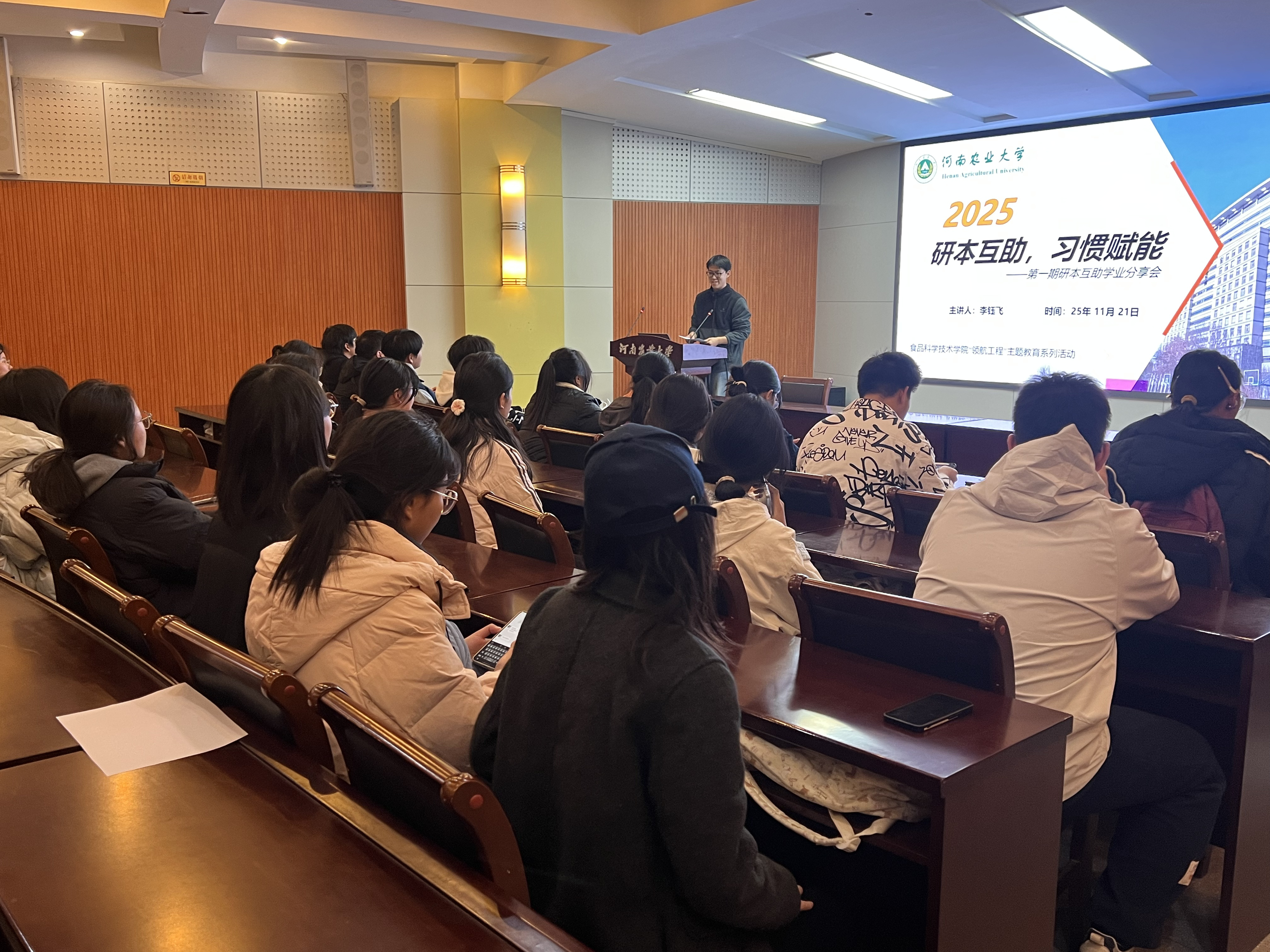 “研本互助,习惯赋能”分享活动第二期在文化路校区百人报告厅举行。研究生辅导员张金龙、2025级研究生李钰飞与29名本科生面对面,围绕如何转变心态、科学规划及平衡学习与实践等话题,展开了深入分享与交流。