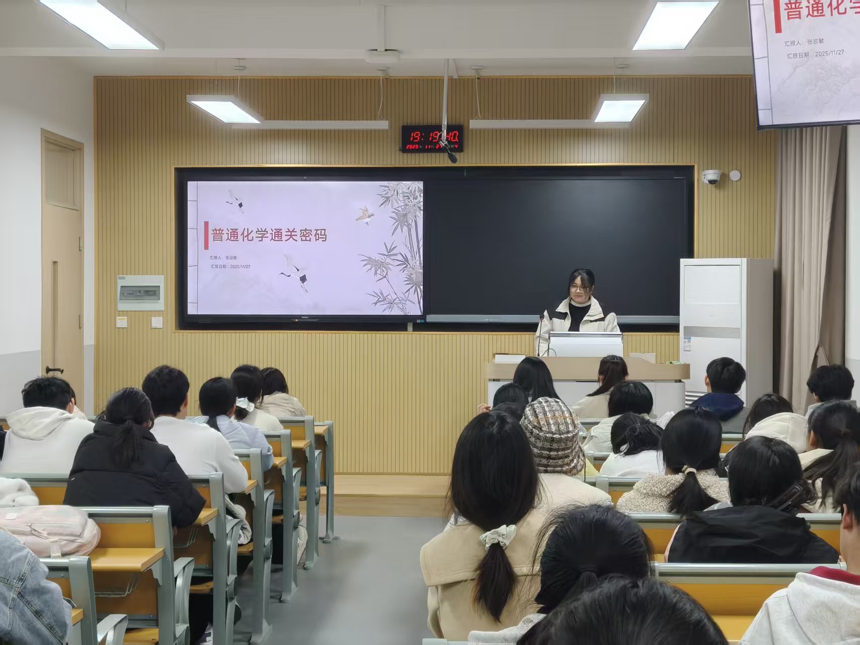 在分享环节中,四位同学各抒己见:杨文越强调高数学习要“善用课堂、掌握方法”,课上紧跟思路,课后复习例题,期末精做真题;王雪纯提出“三阶段学习法”,涵盖预习、笔记、复盘等环节,并建议定期整理易忘点;张淑敏推荐以《普通化学学习指导》和课本例题为核心,配合真题训练与碎片时间利用,提升复习效率;冯雨晴则倡导构建知识体系,通过制定计划、绘制思维导图、组建学习小组等方式实现系统备考。