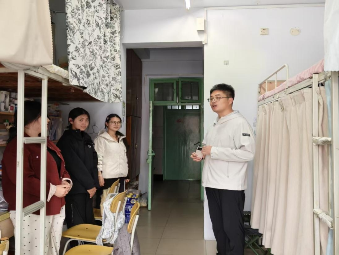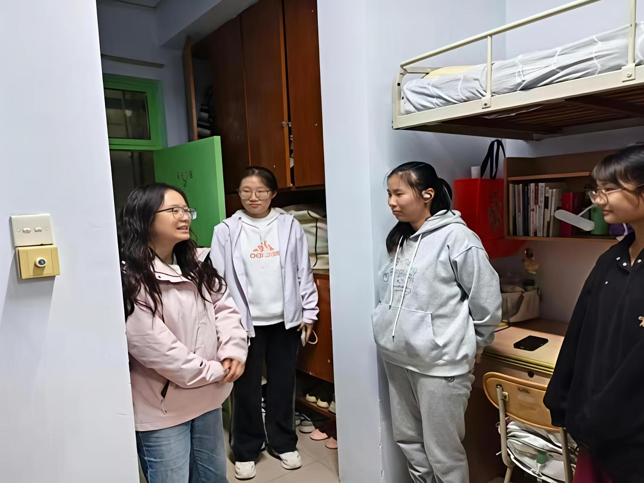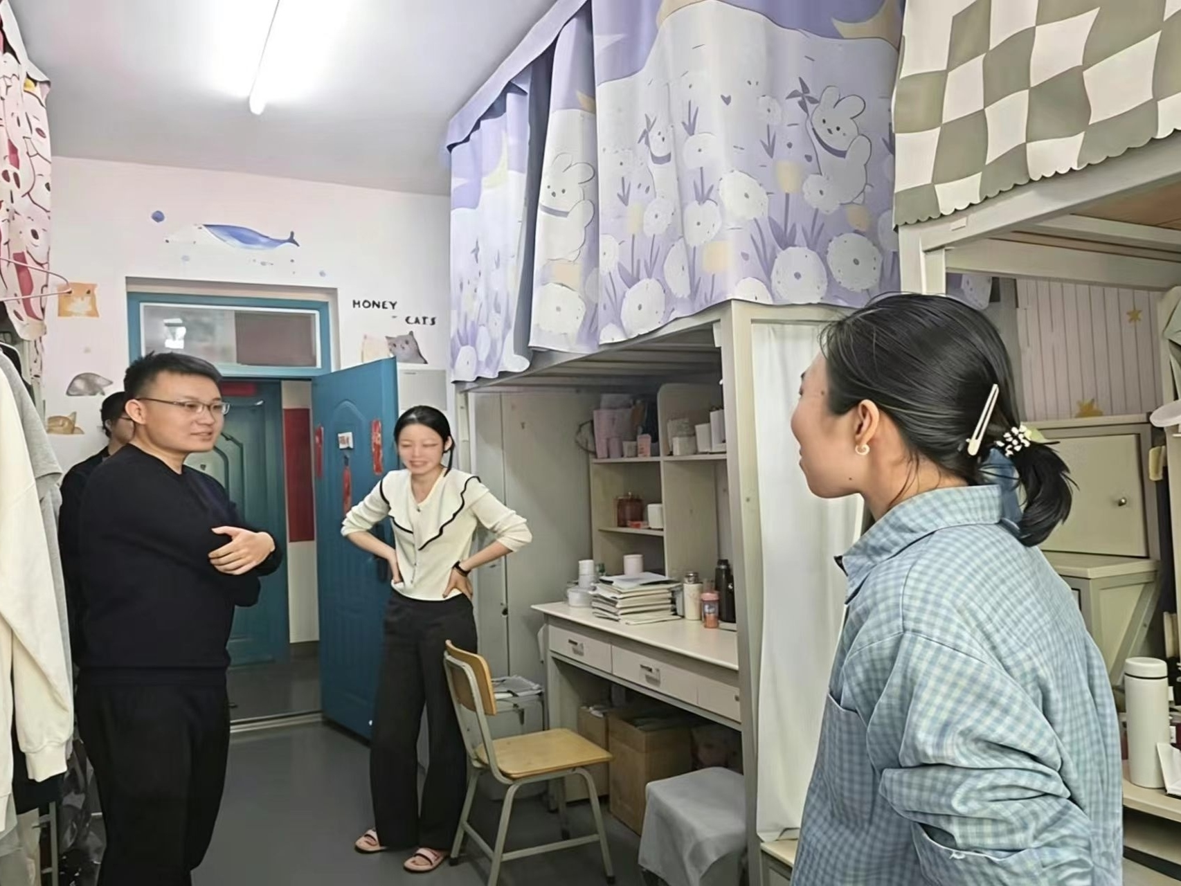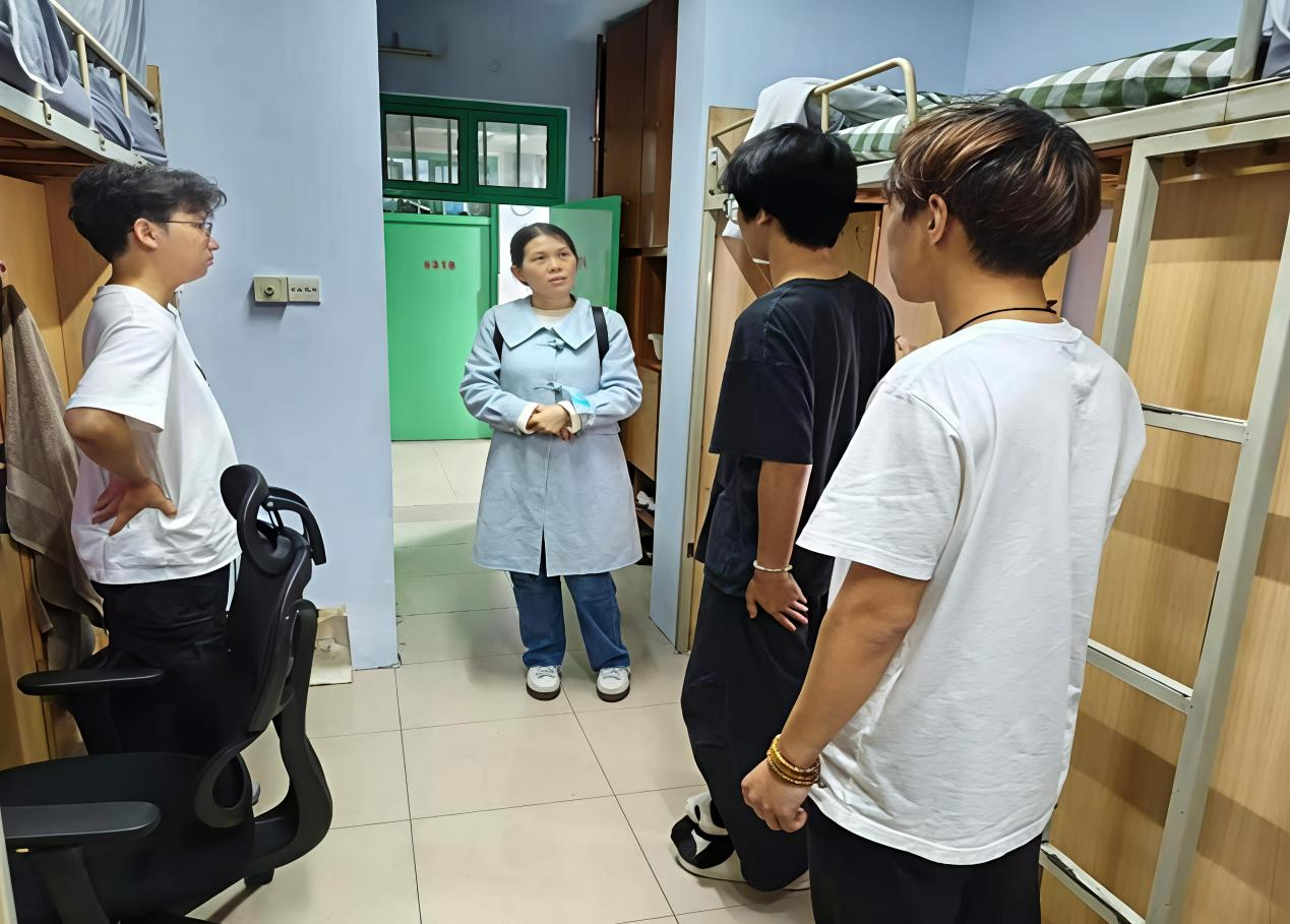 走访中,老师们重点检查插排使用、电器存放等情况,现场纠正私拉电线、插座超负荷等不规范行为,叮嘱学生严格遵守宿舍安全规定,严禁使用大功率违规电器,做到人走断电,消除用电隐患。同时提醒同学们提高反诈防骗意识,警惕各类诈骗陷阱,守护好自身财产安全,以良好状态投入日常学习生活。