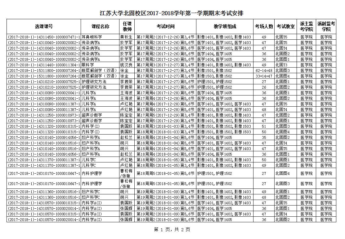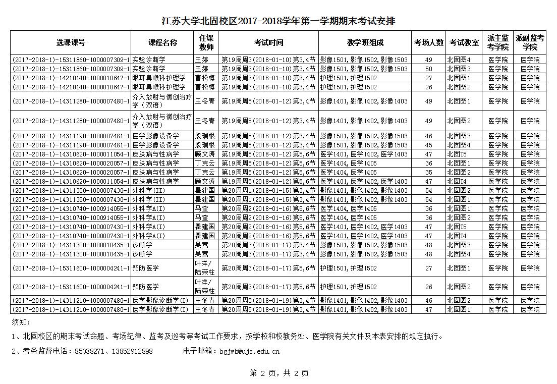 澳门银河app 北固校区2017-2018学年第一学期期末考试安排