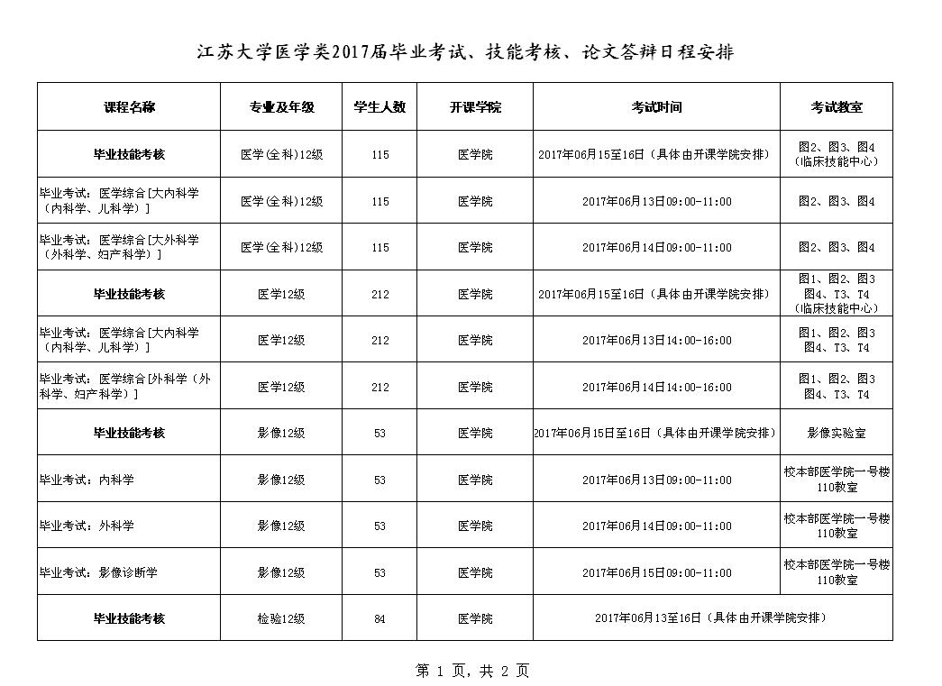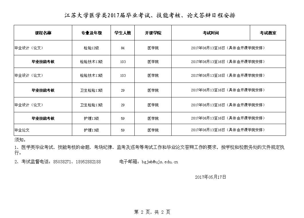 澳门银河app 医学类2017届毕业考试、技能考核、论文答辩日程安排