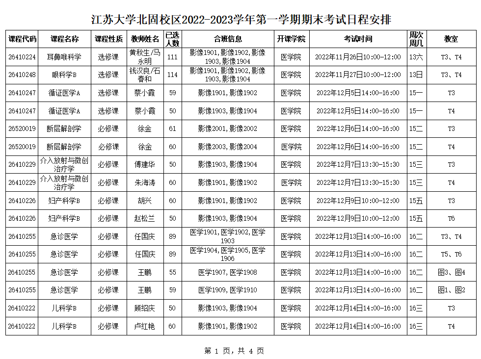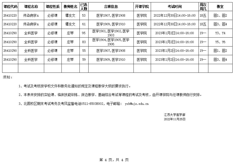 澳门银河app 北固校区2022-2023学年第一学期期末考试日程安排