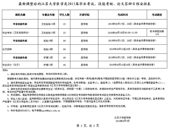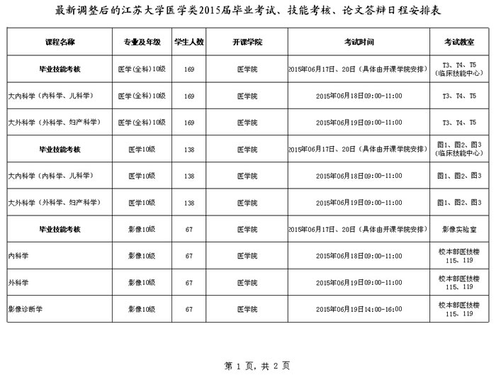 最新调整后的澳门银河app 医学类2015届毕业考试、技能考核、论文答辩日程安排表