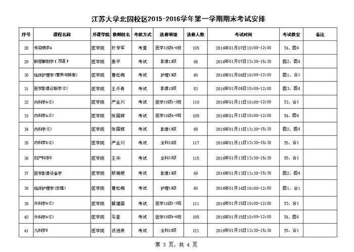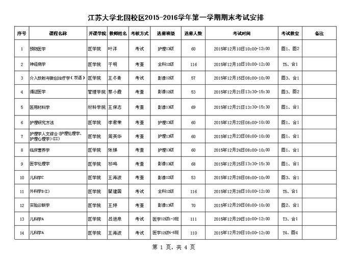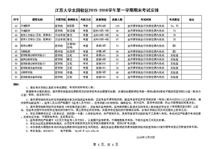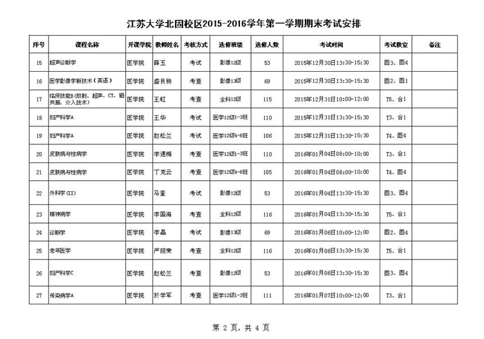 澳门银河app 北固校区2015-2016-1期末考试安排