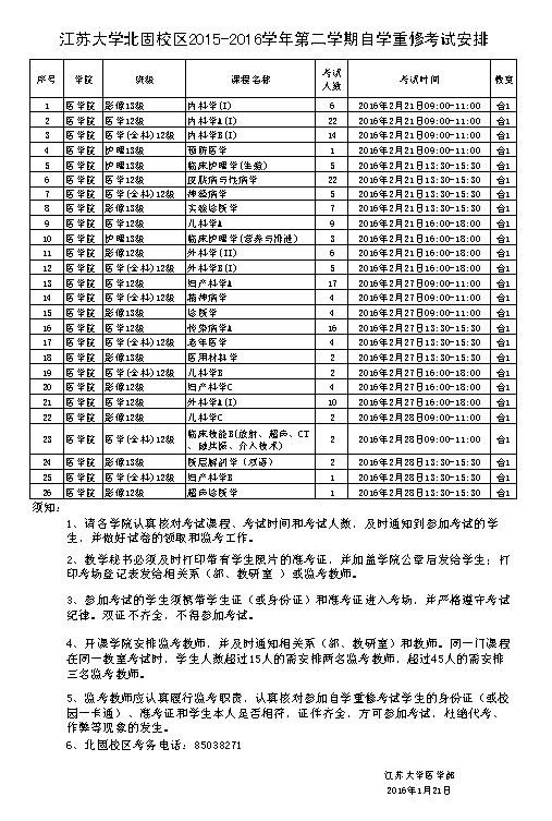 澳门银河app 北固校区2015-2016学年第二学期自学重修考试安排