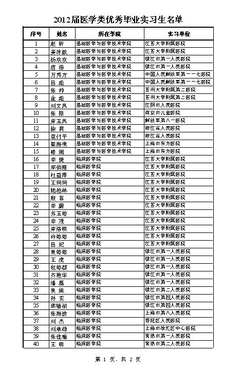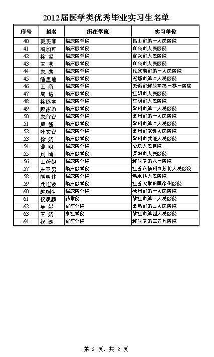 为了更好地调动医学类学生的临床实习积极性,提高临床实习质量,经各实习组民主推荐,实习单位审核,医学部、教务处会同相关澳门银河app 研究决定,授予赵昕等64名同学为2012年“优秀临床实习生”。(名单附后)
