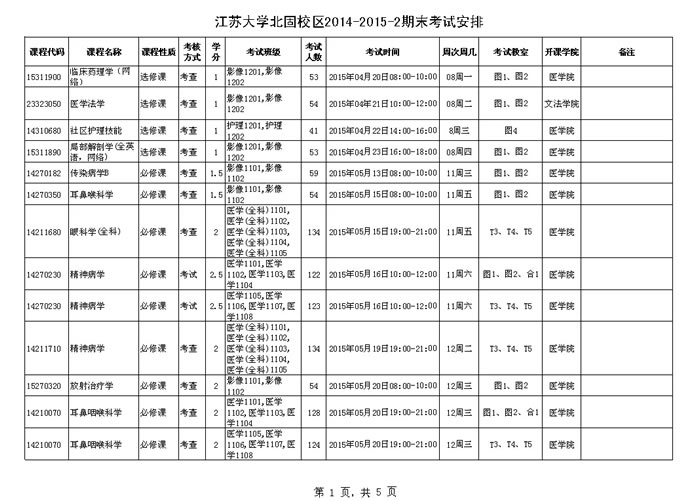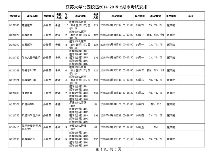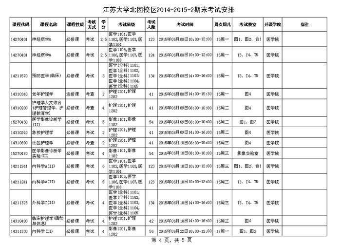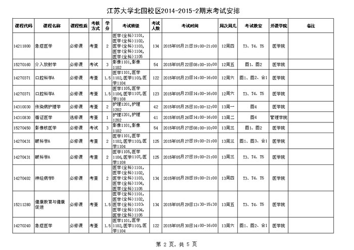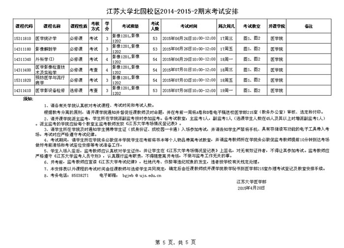 澳门银河app 北固校区2014-2015学年第二学期期末考试安排