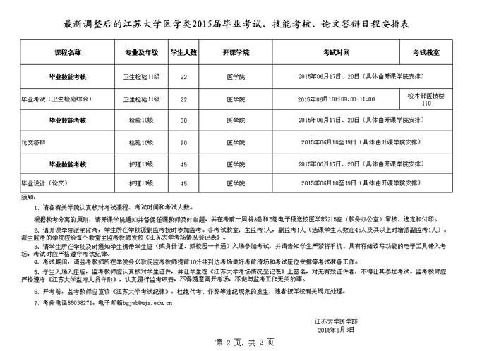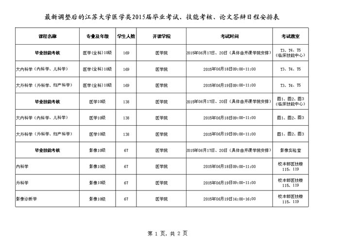 最新调整后的澳门银河app 医学类2015届毕业考试、技能考核、论文答辩日程安排表