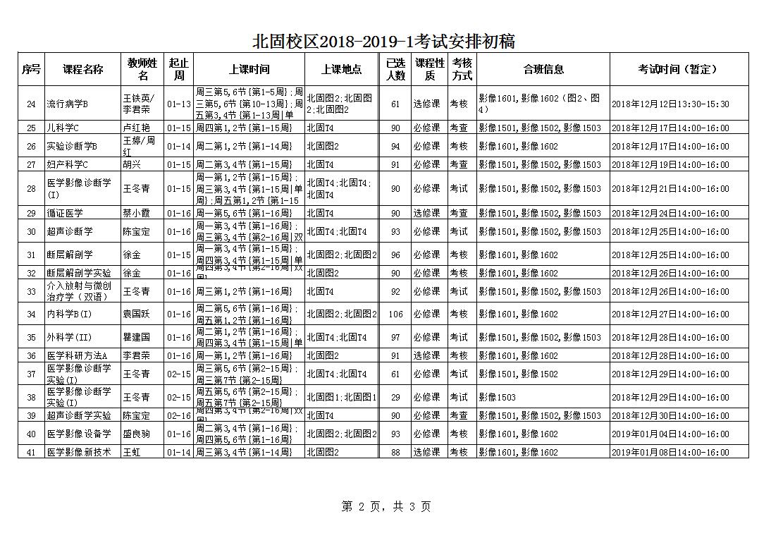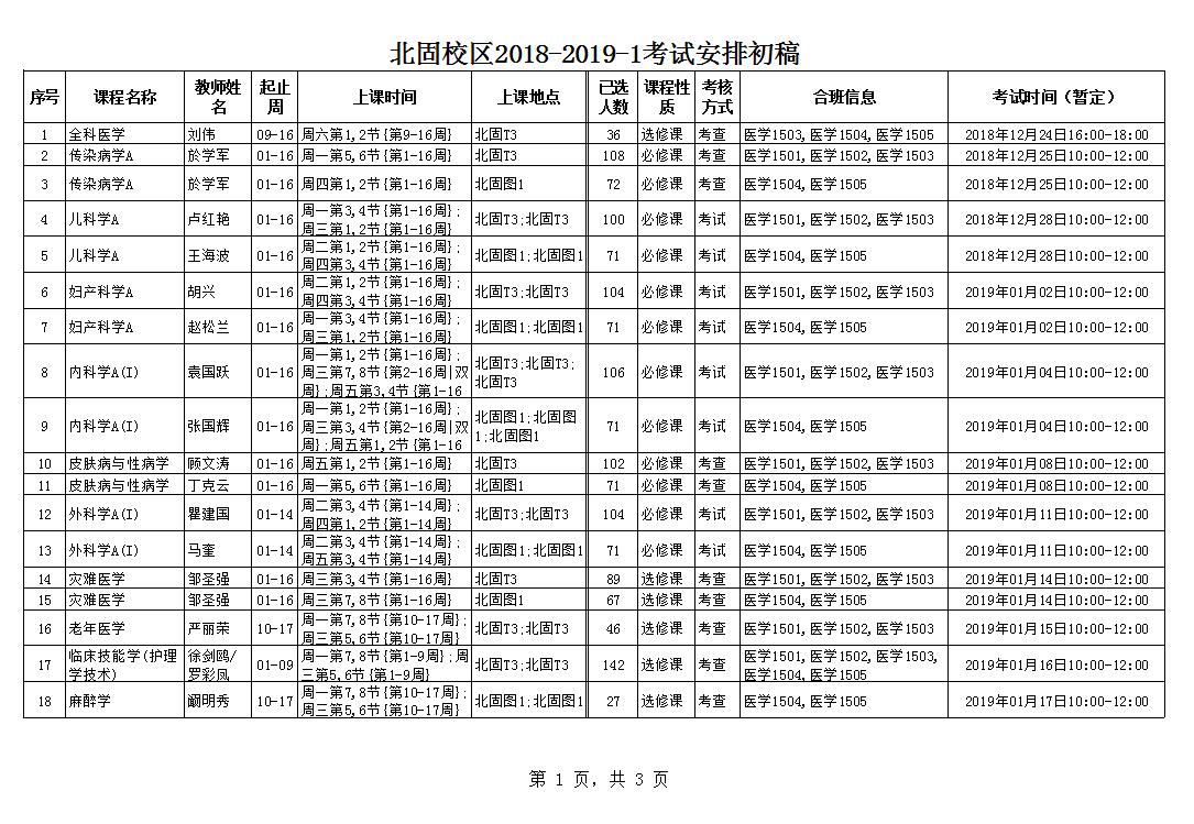 北固校区2018-2019-1考试安排初稿20181129