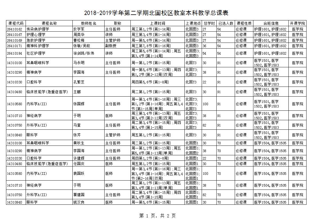 备注:北固校区各教室课表详见附件(T3、T4、图1、图2、图3),北固校区教务管理电话:85038271。