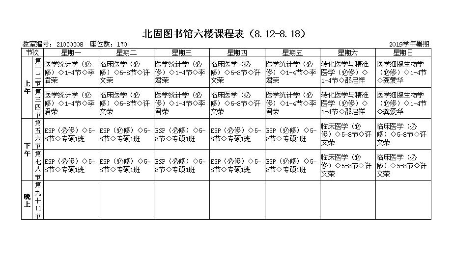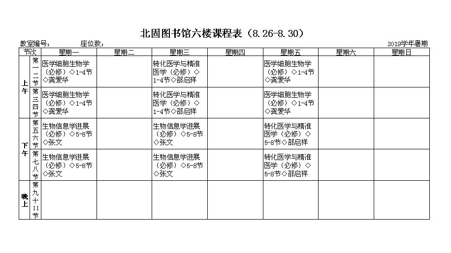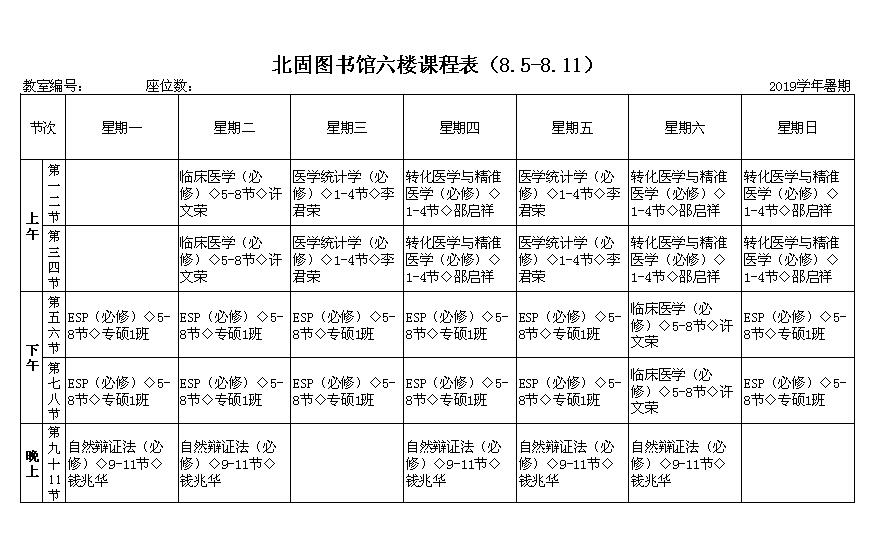 北固校区2019年级研究生暑期课表(图书馆六楼报告厅)
