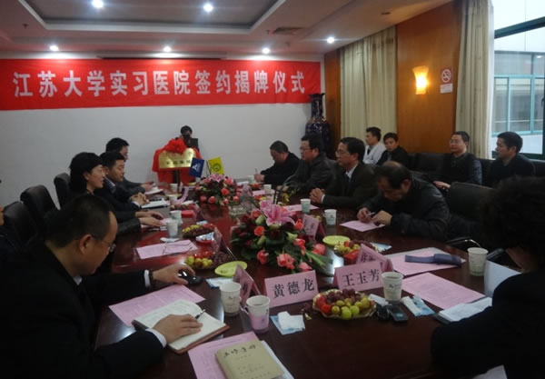 原副院长、调研员姜平教授,张家港市卫生局党委副书记、副局长季春郁,江苏澳洋医药物流有限责任公司执行董事、张家港澳洋医院总经理朱宝元,江苏澳洋医药物流有限责任公司投资总监高峥,张家港澳洋医院常务副总经理、名誉院长薛元坤,常务副院长高家彦,党支部书记王玉芳以及医院有关临床科室、教研室负责人出席了签字与揭牌仪式。
