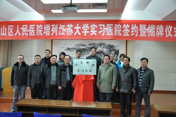 仪式由惠山区人民医院副院长吴荣清主持,惠山区人民医院院长华庆、江苏大学教务处副处长冯军、惠山区卫生局副局长季建飞、江苏大学医学部常务副主任郑金旭先后致词和讲话。华庆院长和郑金旭教授代表双方单位签署合作协议,惠山区卫生局局长马伟和澳门银河app医学部与临床医澳门银河app
